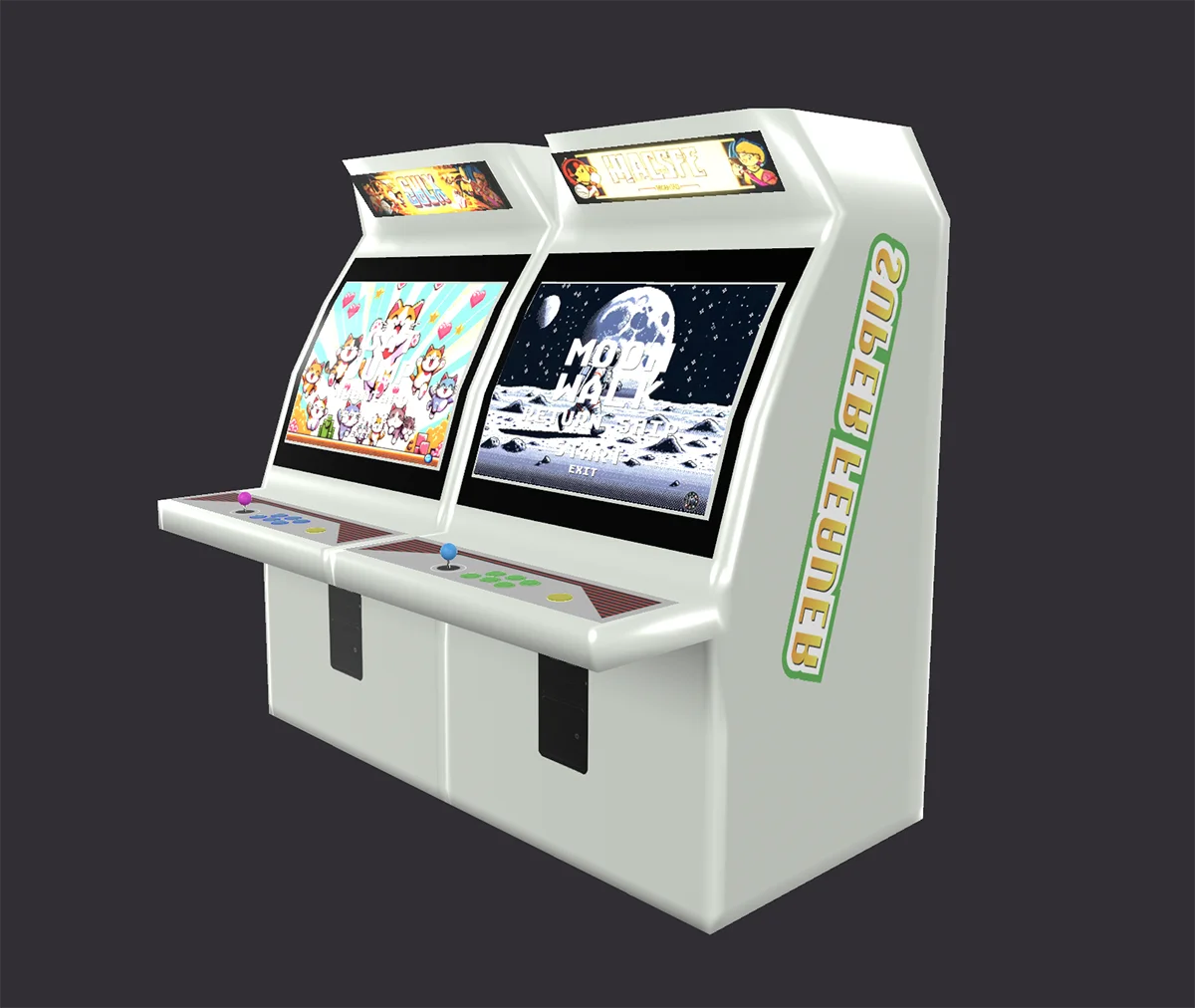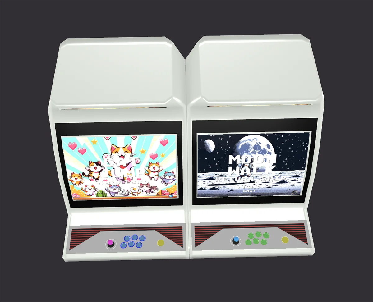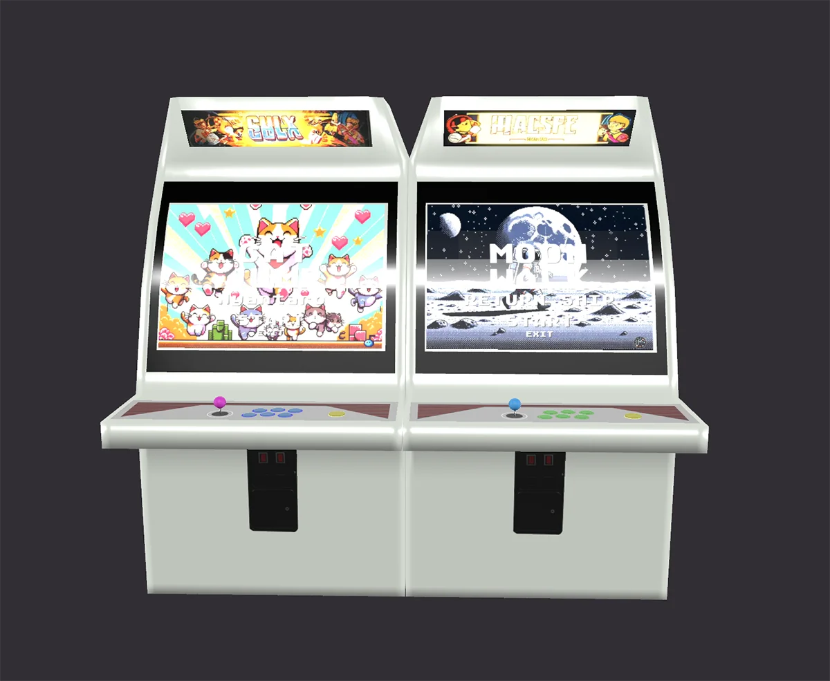 懐かしさ溢れるデザインのクラシックアーケードマシンの3Dモデルです。このモデルは、ピクセルアート風のゲーム画面やリアルなディテールが再現されており、レトロな雰囲気を楽しめる作品となっています。