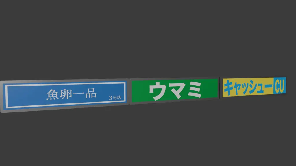 横看板セット|レトロ・サラ金風看板(GLB形式)/ Retro Japanese Signboard Set – Horizontal Layout (GLB Format)